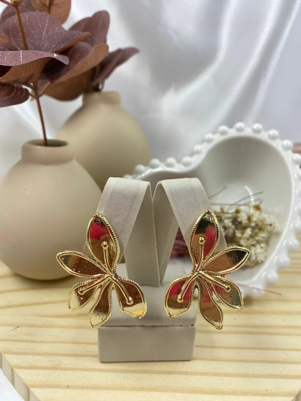 Brinco Folheado Meia Flor